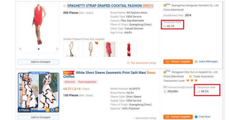 买家能够在搜索产品的时候看到你的及时回复率: